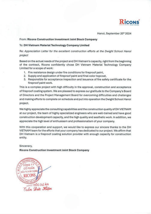 - DH VIỆT NAM với đội ngũ chuyên gia giàu kinh nghiệm thực hiện các dự án lớn và phức tạp, am hiểu pháp lý sâu sắc, DH VIỆT NAM là lựa chọn đáng tin cậy cho các nhà thầu, các đơn vị tư vấn thiết kế, đơn vị phòng cháy chữa cháy.